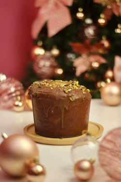 Um delicioso chocotone recheado com um creme de pistache crocante, perfeito para os amantes de pistache. (Aprox 1kg)